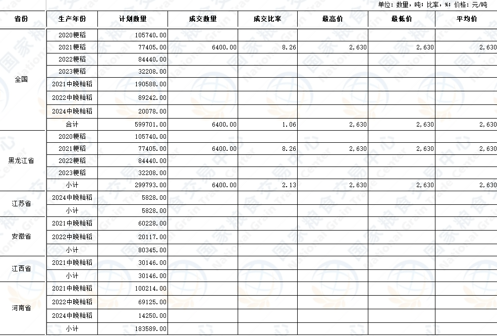 湖北粮网: 交易结果